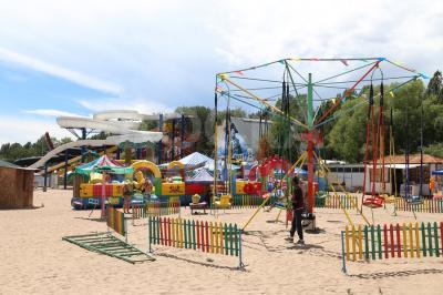 На пляже имеются водные аттракционы, колесо обозрения, американские горки и множество кафе, баров, караоке.