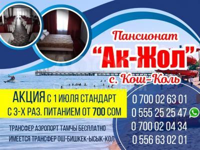 Пансионат Ак-Жол. с. Кош-Коль. Акция с 1 июля стандарт с 3-х раз. питанием от 700 сом.