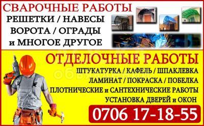 А Также делаем отделочные работы, штукатурка, кафель, шпаклевка, сантехника, установка дверей, окон.