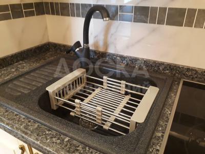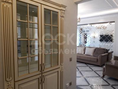 На полу итальянский керамогранит, итальянские обои, техника Bosch последних моделей, мебель тоже из Италии. Дом с отличной архитектурой и качественно выполненной работой. Комплекс большим двором для детей, огороженной и охраняемой территорией. Фасад дома полностью травертин.