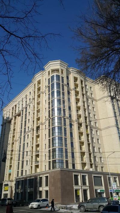 На полу итальянский керамогранит, итальянские обои, техника Bosch последних моделей, мебель тоже из Италии. Дом с отличной архитектурой и качественно выполненной работой. Комплекс большим двором для детей, огороженной и охраняемой территорией. Фасад дома полностью травертин.
