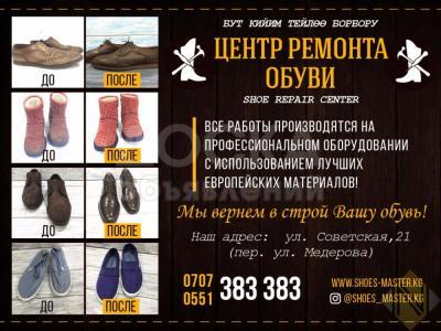 Центр ремонта обуви - shoe repair center.