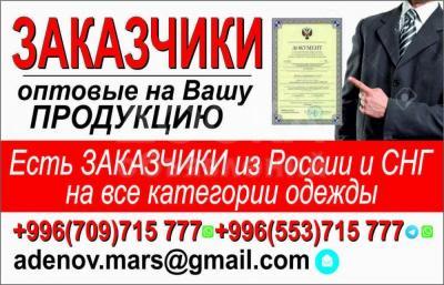 Найду Заказчика на вашу продукцию оптом из России и СНГ на все категории одежды на пошив и на готовую продукцию!