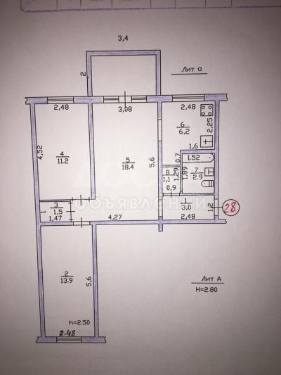 Продаю квартиру 3-ком., 58кв. м., этаж - 4/4, 6 мкр по Старой дороге.