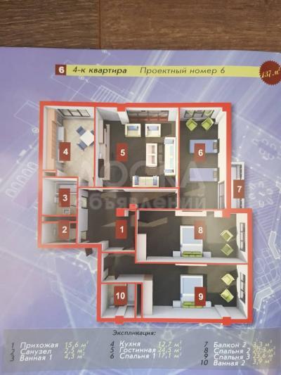 Продаю квартиру 4-ком., 137кв. м., этаж - 9/10, TWIN TOWERS.