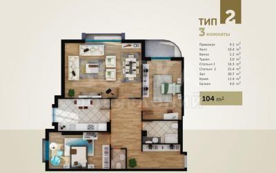 Продаю квартиру 3-ком., 104кв. м., этаж - 8/10, Джунусалиева 177/2.