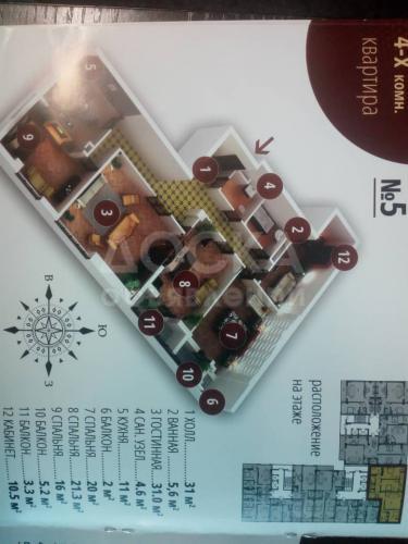 Продаю 4-комнатную квартиру, 161.5кв. м., этаж - 10/10, 7-Мкр.