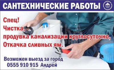 Чистка канализации круглосуточно. Возможен выезд за город. 0555910915 Андрей.