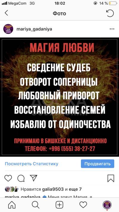Снимаю порчу, любовные привороты, заговорю на удачу, верну любимых в семью,помогу с бизнесом, сильные обряды на огне, а также чёрная магия Сайт- magiya.com.kg