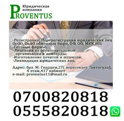 -Регистрация; Перерегистрация юридических лиц ОсОО, ОсДО обменные бюро, ОФ, ОО, МКК,ИП;