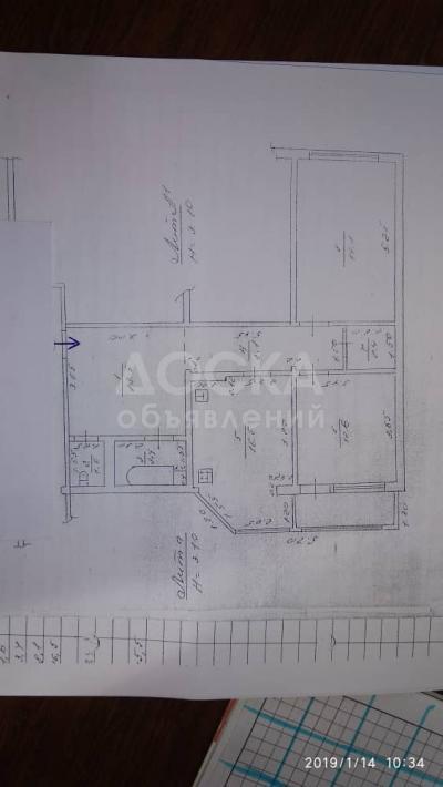 Стены обои. Пол линолеум. Сан узел раздельный 100%кафель. Сантехнические трубы пластиковые. Ремонт требуется.