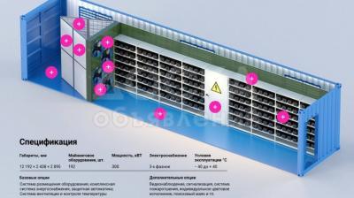 Наши разработки на основе 40-футового морского контейнера позволяют не задумываться о количестве устройств для размещения. Мы разработали безупречную конструкцию, которая без труда сможет разместить на своих стеллажах до 400 устройств для майнинга типа Asic Antminer и вплоть до 800 видеокарт.