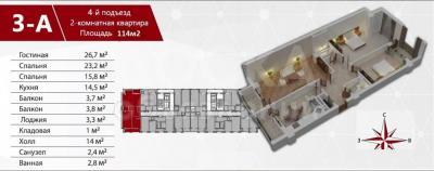 Площадь квартиры - 114м2.