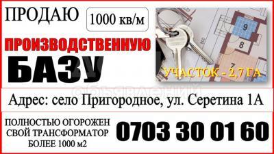 *Дополнительно: Продается производственная база, в начале села Пригородное, строение более 1000 м2, участок 2,7 ГА. Полностью огорожен! Имеется свой трансформатор.