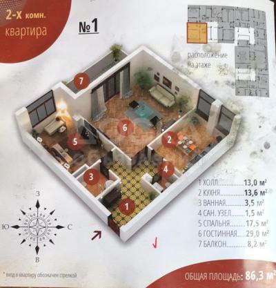 *Общая площадь – 86 к/м;