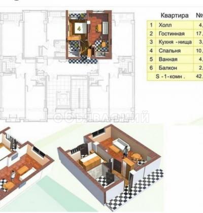 Продаю 1-комнатную квартиру, 42,16кв. м., этаж - 8/10, Калык-Акиева/Чуй..