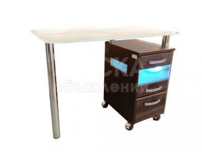 Стол маникюрный с 1 тумбой, со стеклянной столешницей и УФ-блоком