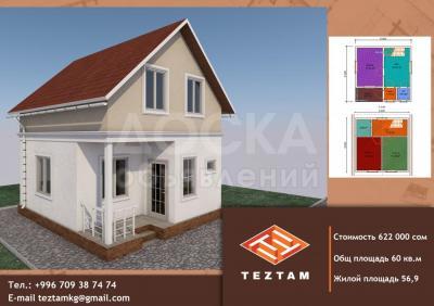 ТезТамдан жаны проект чакан уй 54 чарчы метр