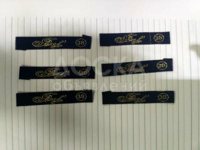 Жаккардовые бирки (лейбы) производство Турция черные тканые золотой ниткой.. Бренд АЗЕЛЬ размеры 36, 38, 40, 42. Размер ярлыка: ширина 6 см * высота 1 см