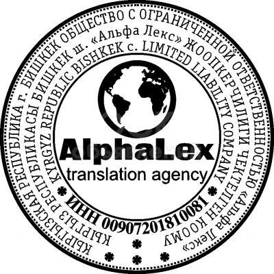 Переводческое агентство "AlphaLex" предоставляет услуги языковых переводов документов и текстов с/на все языки мира:* тендерных документов, документов на выезд, паспортов, * ID карты, * свидетельства, * справки,* книги,* журналы,* газеты и т. д.* дополнительные услуги: - нотариальное заверение 150 сом -заполнение анкет 250 сом - апостиль и легализация -открытие и закрытие организаций ОсОО, ЧП, ИП и т. д. АВИАБИЛЕТЫ по всем направлениям онлайн консультации\, покупка\, бронирование