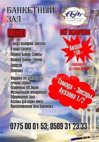 Банкетный зал «Азат» в Бишкеке Акция: 750с! Все включено