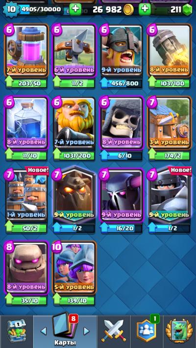 Продаю аккаунт клеш рояль все легендарки, арена и уровень на фото. Продам при встрече, без обмана.