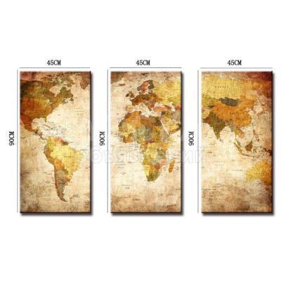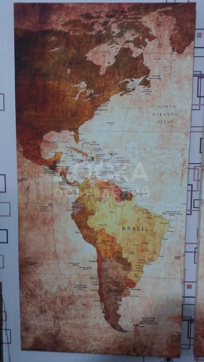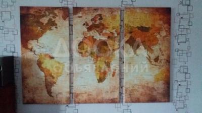 "Карта мира" - модульная картина из 3-х частей. печать на холсте. Декор стены, квартиры, офиса, кафе, класса, клуба.