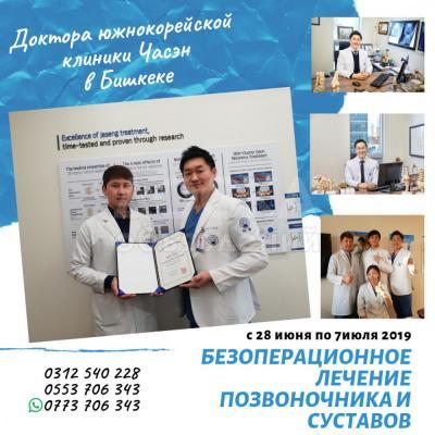 С 28 июня по 7 июля , 2019г. в Бишкек приезжают доктора из знаменитой южнокорейской клиники "Часэн", для безоперационного лечения позвоночных Заболеваний.