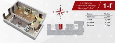 Общая площадь квартиры 56м2. Окна выходят на Восток.