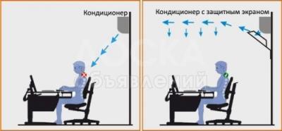 Дефлектор для кондиционера – это экран, перенаправляющий поток холодного воздуха вверх, откуда он опускается желанной прохладой на всё помещение. Чем он может быть полезен? Да у него уйма качеств!