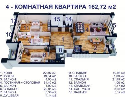 Продаю 4-комнатную квартиру, 162кв. м., этаж - 5/8, проспект Ч.Айтматова 299.