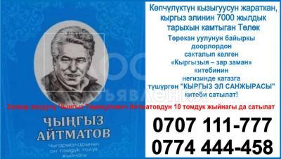 Көпчүлүктүн кызыгуусун жараткан, кыргыз элинин 7000 жылдык тарыхын камтыган Төлөк Төрөкан уулунун байыркы доорлордон сакталып келген «Кыргызыя – зар заман» китебинин негизинде кагазга түшүргөн "КЫРГЫЗ ЭЛ САНЖЫРАСЫ" китеби сатылат! Китеп көлөмдүү А4 форматында 500 беттен турат. Баасы 1500 сом.