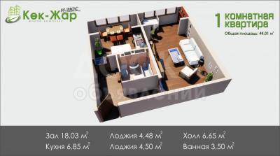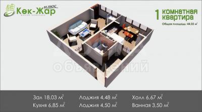Продаю 1-комнатную квартиру, 44кв. м., этаж - 1/9, Ахунбаева Молдокулова.