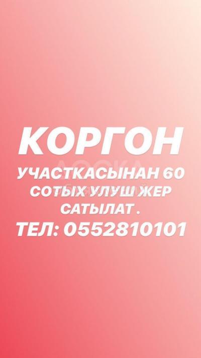 Коргон участкасынан 60 сотых улуш жер сатылат. Тел:.
