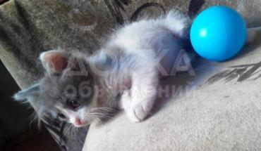 Здоровый, приученный к лотку котёнок. Порода: европейская короткошёрстная + сибирский пуховый. Снимает стресс, если его любить и гладить.