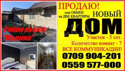 Продаю дом 7-ком. 120кв. м., этаж-1, 5-сот., стена кирпич, г. Бишкек, верхний Токольдош, район Мадины .