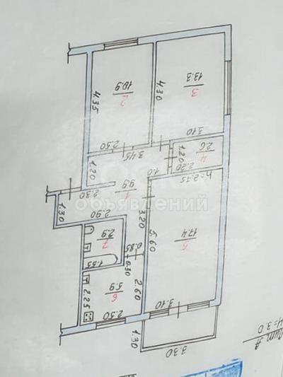 Продается 3-х комнатная квартира 62,9 кв. м, 45,8$