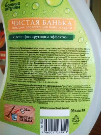 Назначение: для мытья и обработки всех поверхностей в бане и сауне (дерево, кафель, стекло, пластик и т.д.)