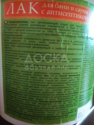 Наименование: Лак для бани и сауны с антисептиком