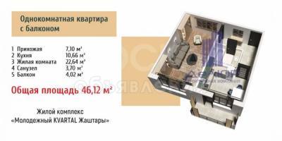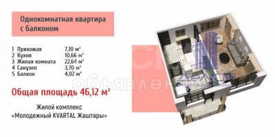 Продаю 1-комнатную квартиру, 46кв. м., этаж - 4/9, Проспект Мира пересекает Токтоналиева.